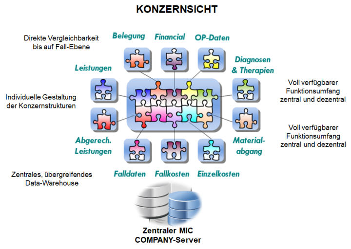 Die in den einzelnen Betrieben eines Konzerns oder einer Klinikgruppe verfügbaren MIC-Systeme können je nach Wunsch und Bedarf in einem