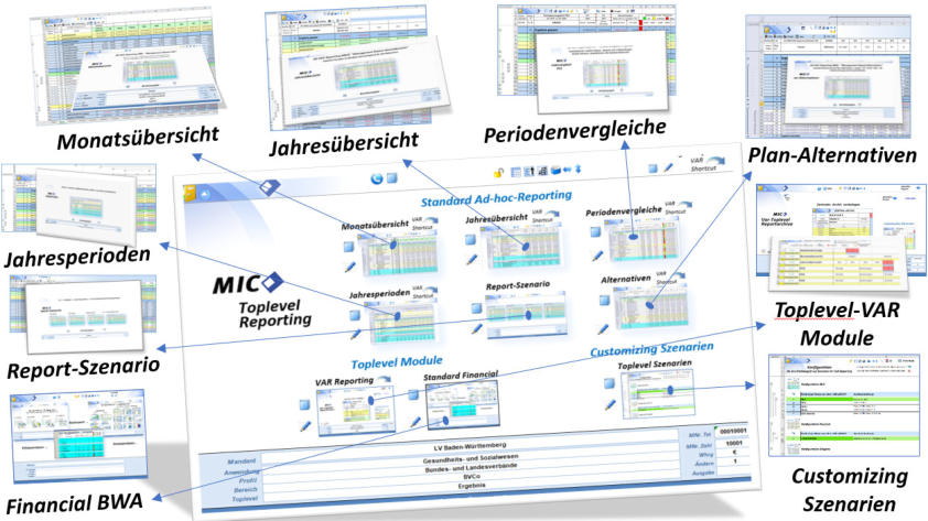 Toplevel-Generator ermöglicht Ihnen, Ihre "individuelle Berichtswelt" völlig selbständig erstellen und beliebig erweitern zu können. Sie profitieren