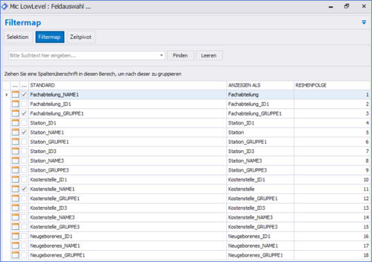 Multidimensionale Filter stellen ein wichtiges funktionales Merkmal des MIC Lowlevel-Systems dar. Sie ermöglichen die übergreifende Selektion