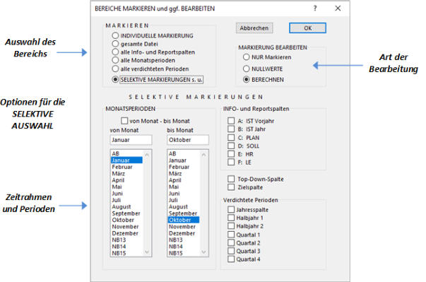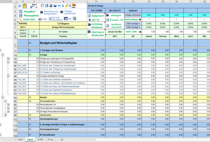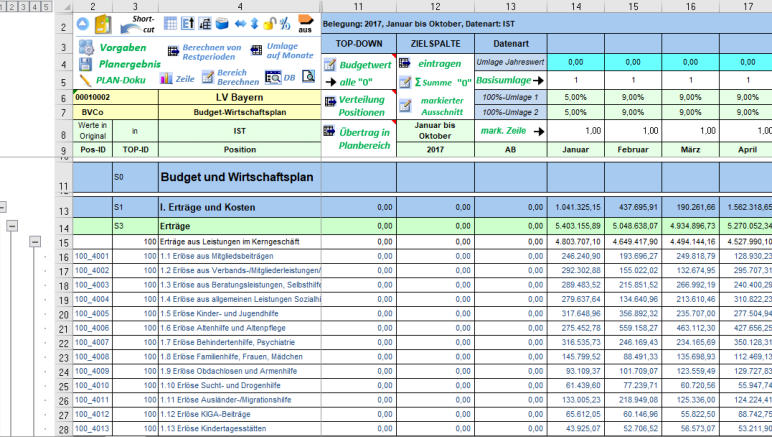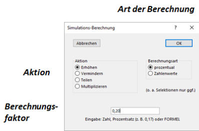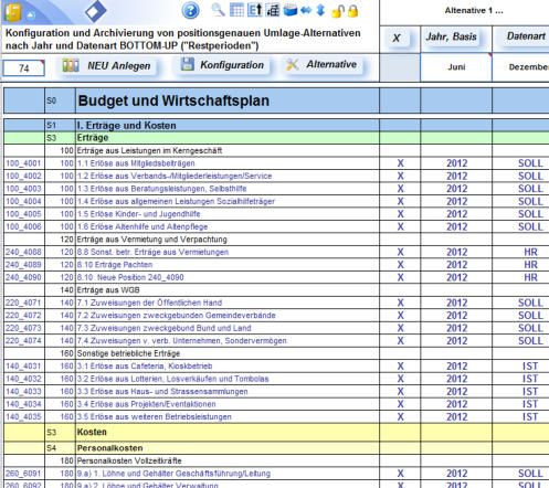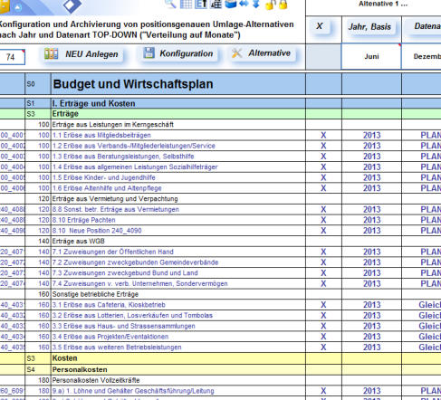 Planung und Simulation genutzt werden. Automatische Erhöhung/Verminderung einzelner Positionen können prozentual oder in Festbeträgen