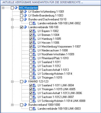 Jeder hinzugefügte Bericht wird für alle markierten Mandanten der Serie ausgeführt.
