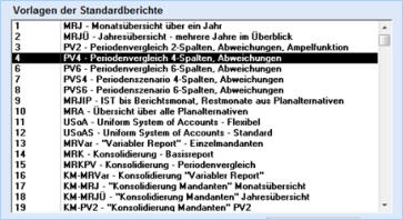 Vorlagen aller hinterlegten Standardberichte,