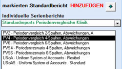 Auswahlfenster fördern die schriffweise Verfeinerung von einer Serie bis zu dem gewünschten Bericht auf einen einen Blick.